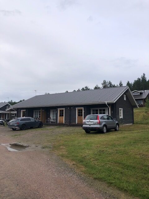 En Finlande, nous avons roulé jusqu’à Sarkijarvi. C’est à partir de là que nous avons commencé à voir des rênes un peu partout. Puis nous avons décidé de ralentir la cadence. Nous sommes venu à Sarkijarvi en février 2020 et nous avions passé une semaine de rêve. Alors, nous avons fait quelques kilomètres supplémentaires pour revoir ce coin tranquille. En hiver tout semble magique, grandiose, sans barrières et sans limites. En été nous avons trouvé des grandes herbes à l’endroit où nous allions au lac et nous n’avons pas pu nous en approcher. Les grandes étendues blanches où nous allions chasser les aurores boréales sont des terrains quelconques coupés par la route, les moustiques sont partout… Nous avons trouvé une petite place au bord du lac où nous avons passé la nuit. La magie de la Laponie en hiver n’est pas la même en été sous la pluie 😂 La pluie n’a pas cessé alors nous avons repris la route en passant par la station de ski où nous avions loué les motoneiges et où tout est triste et désertique… Au milieu de la Laponie, sous la pluie avec 12 degrés dehors, nous avons préféré rouler pour s’approcher un peu plus de notre but.