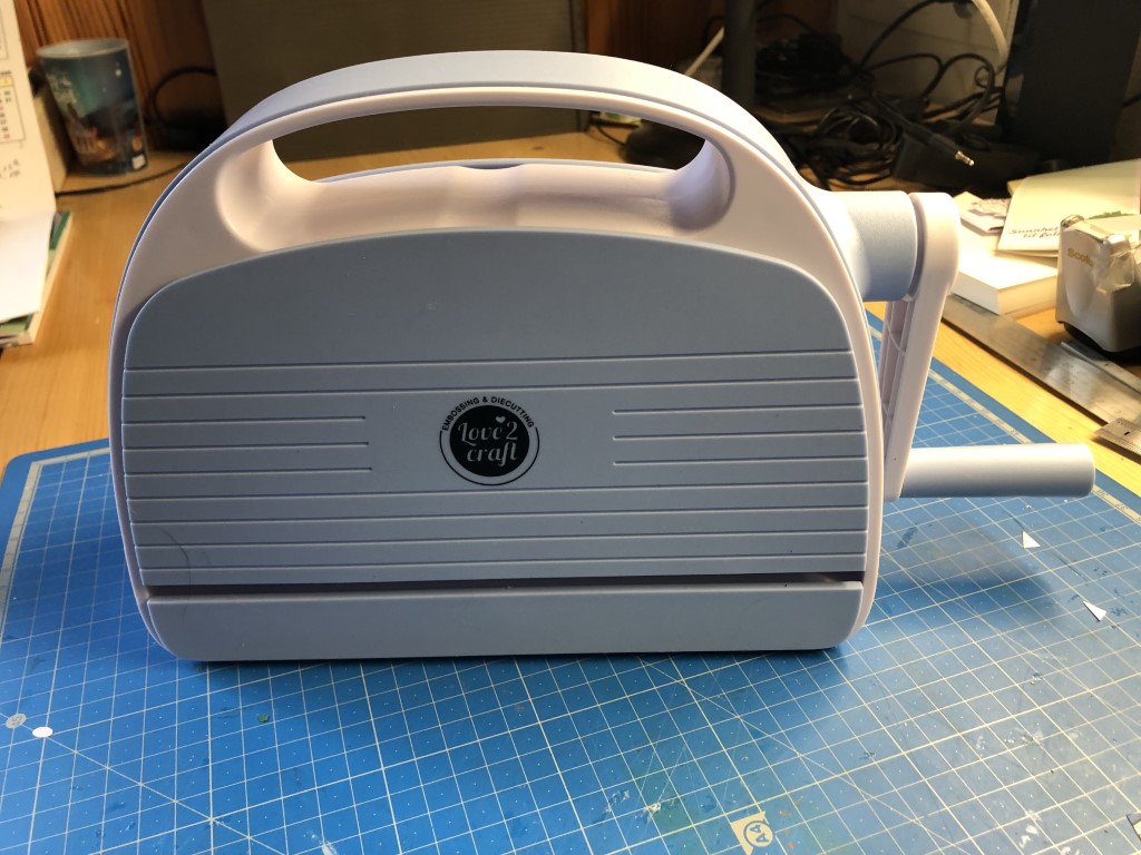 Par curiosité et pour le plaisir, j’ai craqué pour la machine de découpe de d’embossage vendue chez Action. C’est le même principe que la Cut’n boss, elle fonctionne avec des matrices de découpes et des classeurs d’embossage mais elle n’est pas électrique, il faut tourner une manivelle pour faire avancer les plaques en plexiglas. Je n’ai pas eu le temps de beaucoup utiliser cette machine mais d’après mes essais, elle fonctionne très bien et je ne regrette pas mon achat.