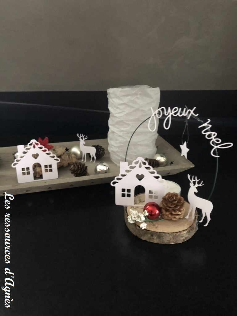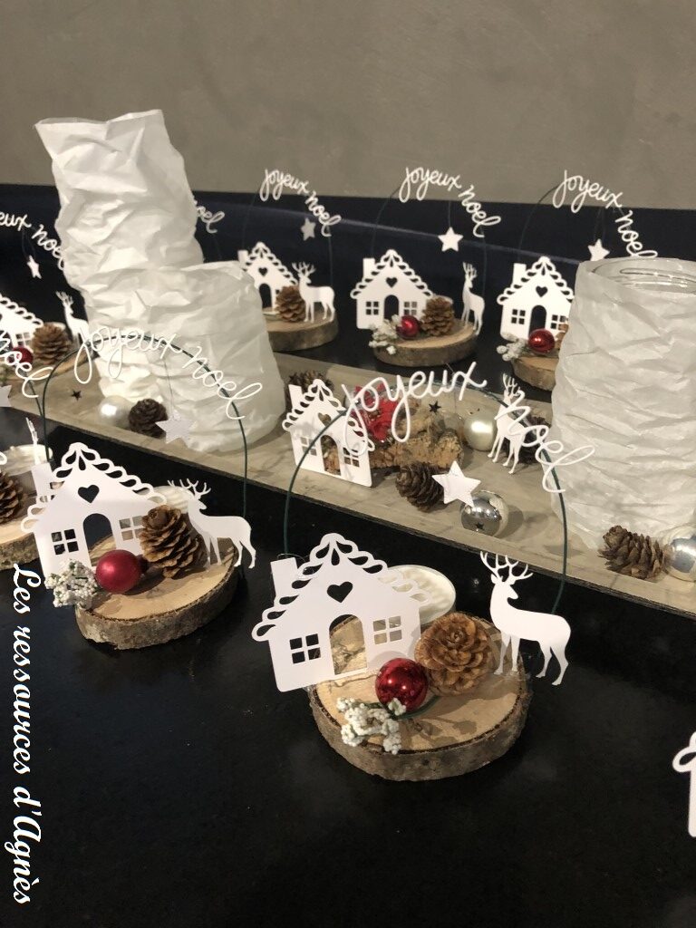 Toutes sortes de découpes sont possibles, avec différents supports. Voici par exemple des décorations de Noël pour lesquelles j’ai utilisé la Caméo. Cette machine est pratique pour réaliser des découpes en grand nombre comme cette maisonnette.