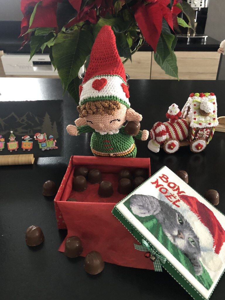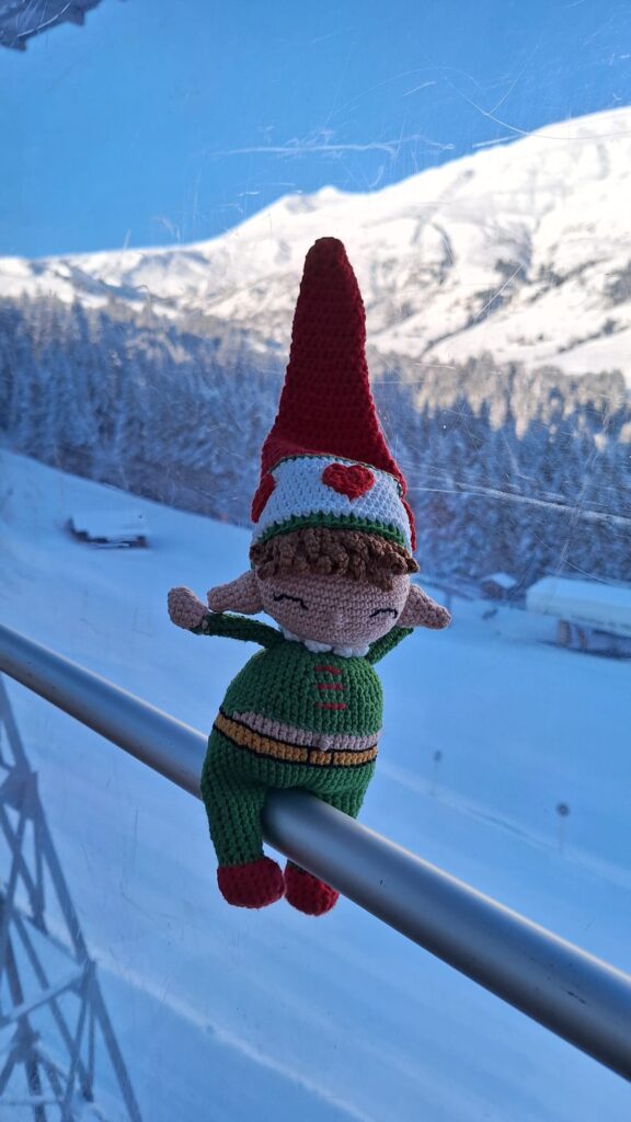 Coquin est né sous mon crochet cet été d’après un modèle trouvé dans ce magazine. Nous avons profité de notre voyage en Norvège pour le déposer au pays du père noël pour qu’il l’aide dans la préparation des cadeaux. Coquin est maintenant de retour à la maison pour profiter de ses vacances. Régulièrement, je complèterai cet article avec les photos des vacances de Coquin.