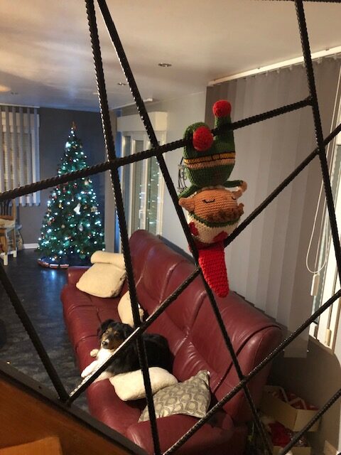 Sa chute du sapin ne lui a pas fait peur ! Voici Coquin qui fait de l’escalade maintenant. Heureusement que Mala le surveille.