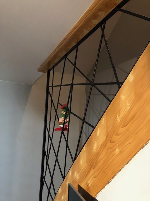 Coquin grimpe au plafond ! Peut-être qu’il voulait essayer de faire du tourniquet mais heureusement qu’il n’a pas réussi à allumer le plafonnier !