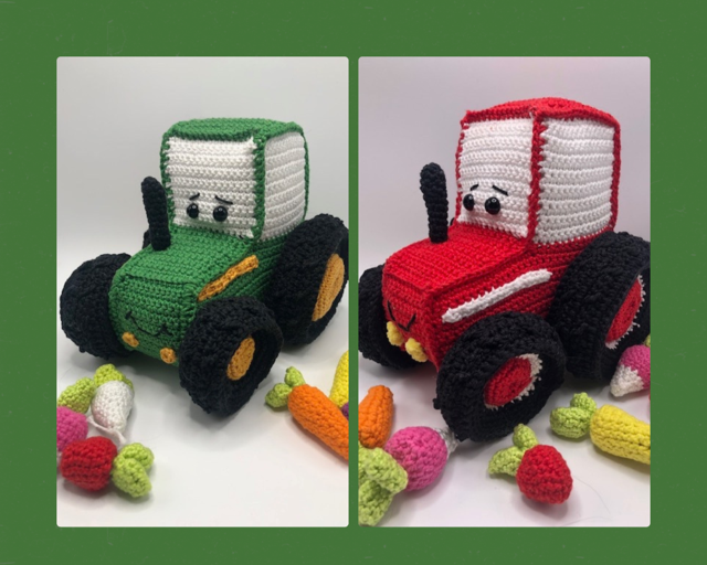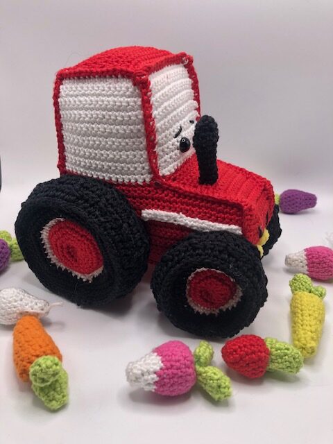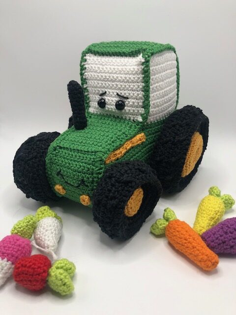 AussitĂŽt mamie se met en recherche d’un tutoriel. J’ai trouvĂ© un tutoriel gratuit en anglais que j’ai traduit et voici le rĂ©sultat. Comme mes deux petits garçons sont fans de tracteurs, je n’ai pas pu m’arrĂȘter Ă  un tracteur. Chacun le sien â˜ș