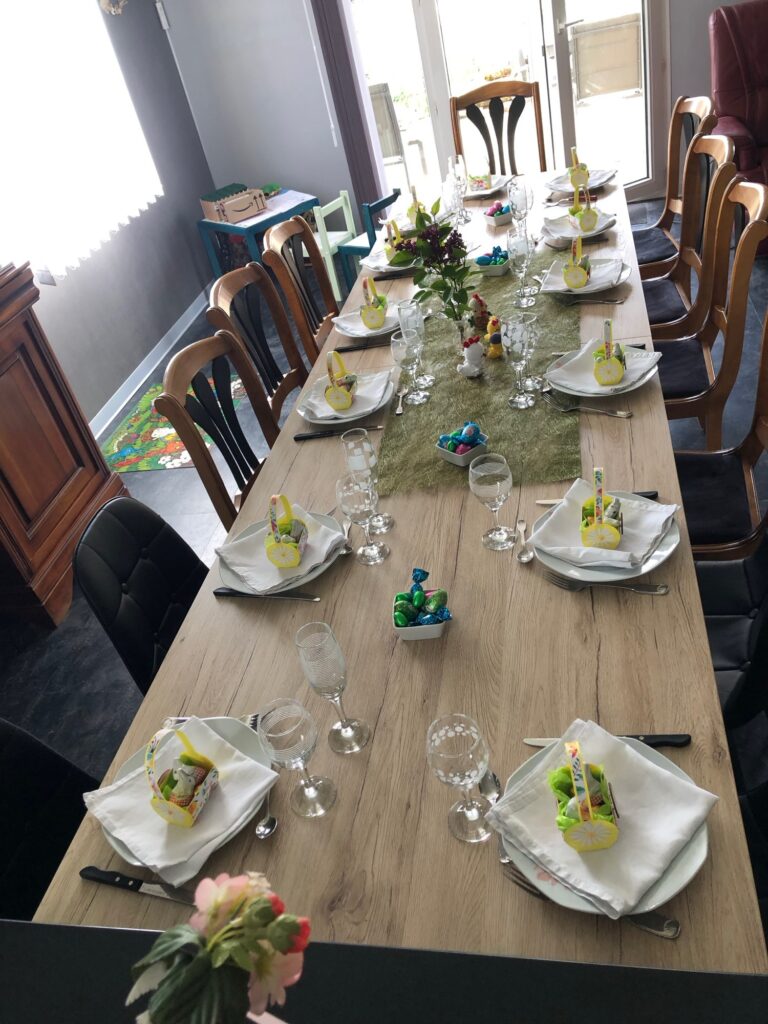 Cette année, nous avons choisi de faire une virée en boîte fugueuse le week-end de Pâques. Mais pas question d’annuler l’occasion de se retrouver en famille. C’est donc le week-end suivant que nous avons fêté Pâques par une belle journée ensoleillée qui nous a permis de prendre l’apéritif et le dessert dehors. Aaron et Ezio ont fait la chasse aux œufs et aux cadeaux. De beaux moments en famille ❤️