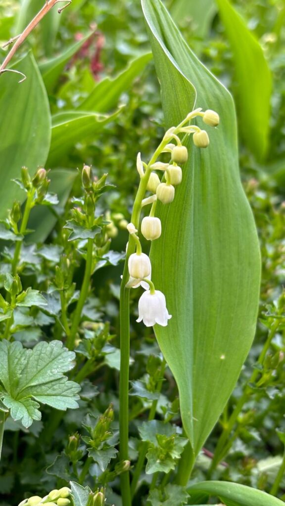 Comme chaque année, le muguet fleurit tôt chez nous. Il est souvent défleuri pour le premier mai. Cette photo est datée du 10 avril.